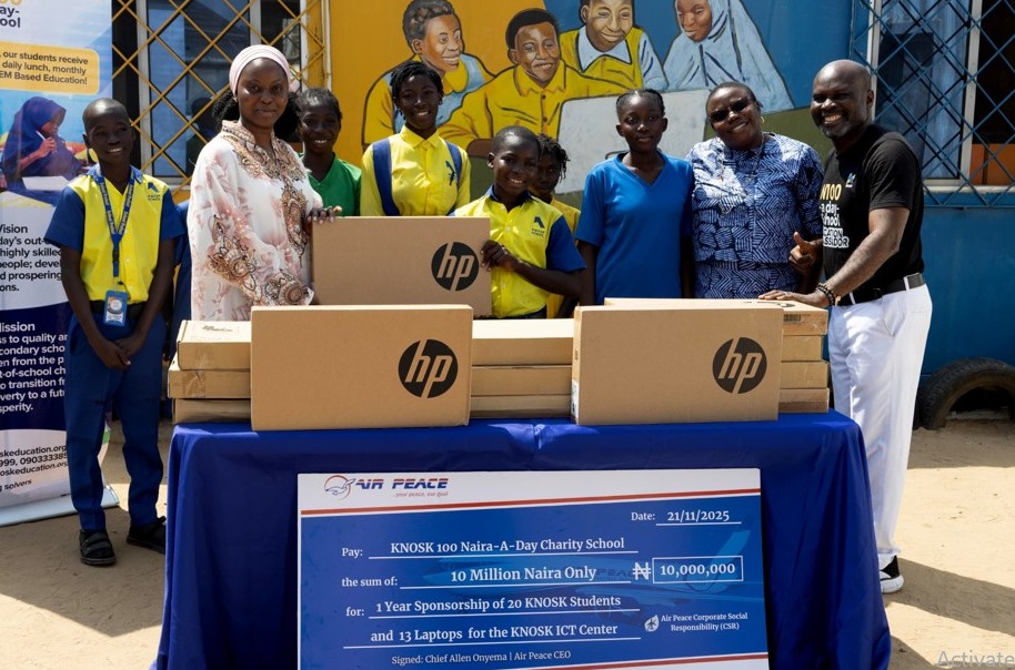 Nigeria’s leading airline, Air Peace, has made a life-changing donation to the KNOSK (Knowledge, Skill and Kreativity) 100NairaADay Secondary School in Kuje, Abuja becoming the first major Nigerian corporate body to ever support the school.